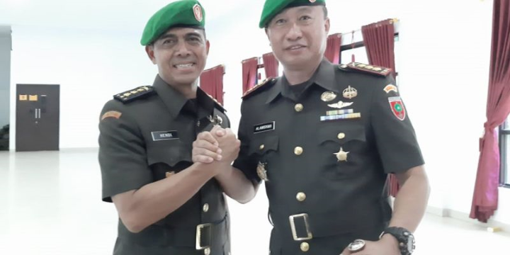 Jabatan Komandan Distrik Militer 1417 Kendari, Sulawesi Tenggara diserah terimakan dari Kolonel Kaveleri Hendi Suhendi kepada Kolonel Infantri Alamsyah di Aula Sudirman Korem 143 Haluoleo.